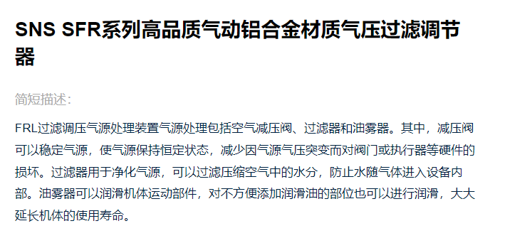 SNS 高品质气动铝合金材质气压过滤调节器SFR系列