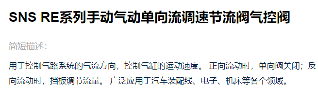 SNS 手动气动单向流调速节流阀气控阀RE系列