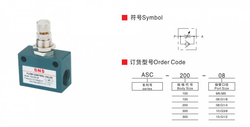 SNS 手动气动单向流调速节流阀气控阀ASC系列