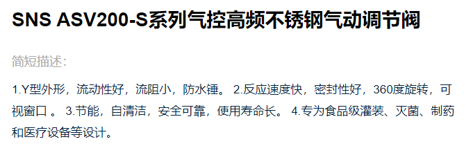 SNS 气控高频不锈钢气动调节阀ASV200-S系列