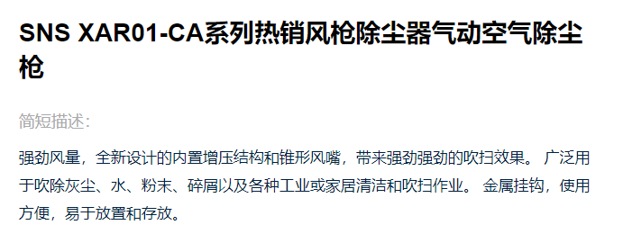 SNS 热销风枪除尘器气动空气除尘枪XAR01-CA系列