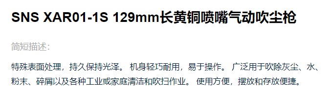 SNS 129mm长黄铜喷嘴气动吹尘枪XAR01-1S系列